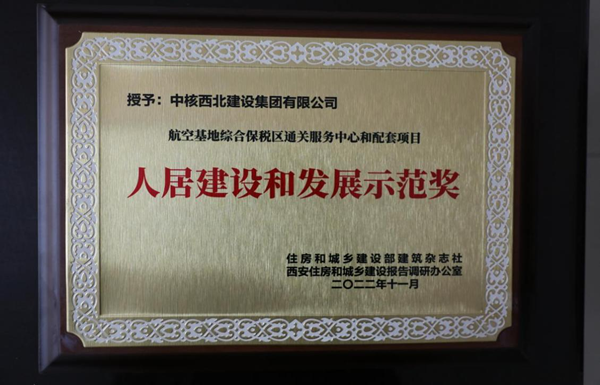 近日,喜讯传来,集团公司荣获住房和城乡建设部建筑杂志社、西安住房和城乡建设局建设报告调研办公室共同颁发的“住房和城乡建设突出贡献奖”,航空基地综合保税区通关服务中心和配套项目荣获“人居建设和发展示范奖”。